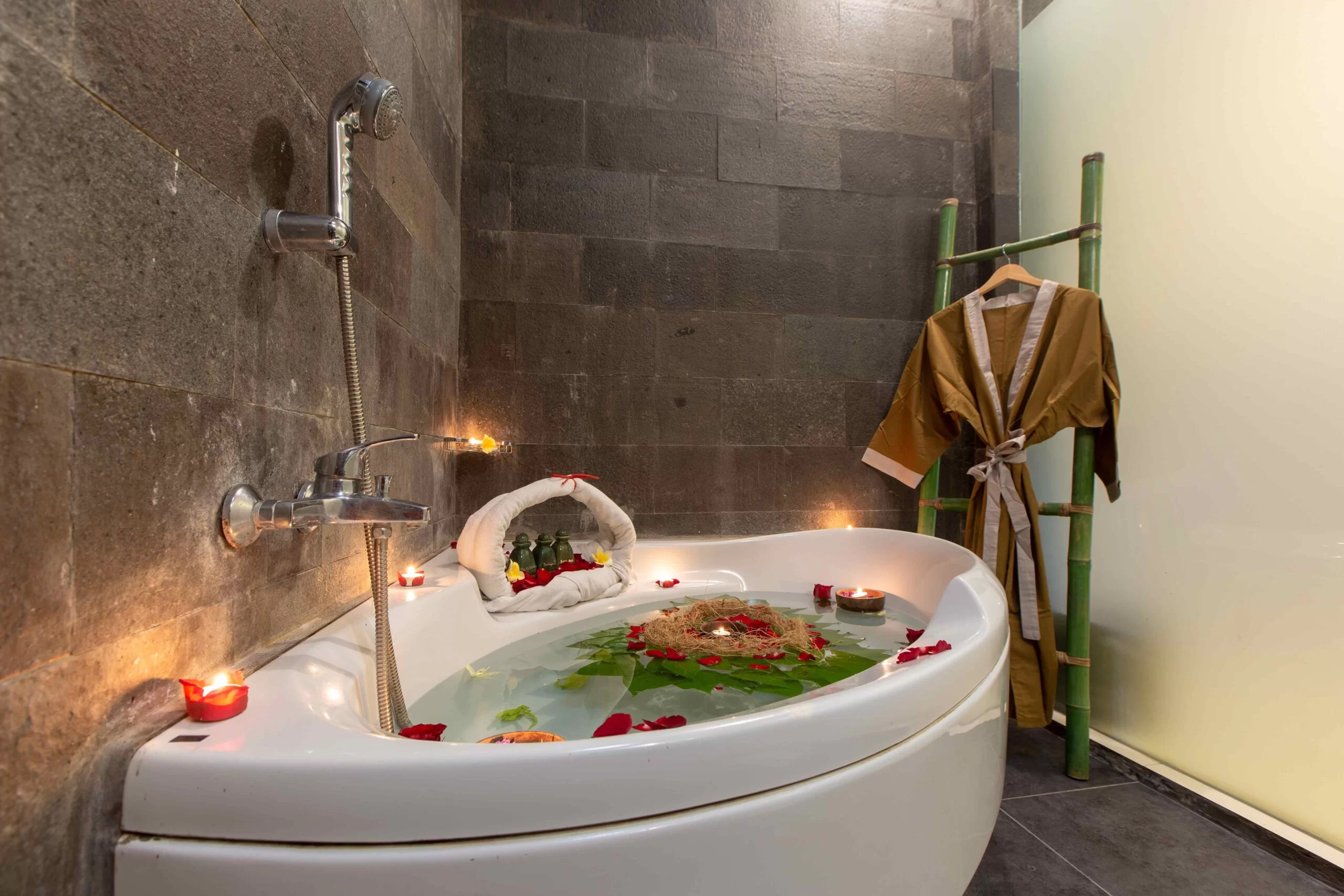 Luxurious 42 sqm suite rooms on the first floor only, with double bed, mosquito net, standing shower, bathtub, self-controlled air conditioner, mini bar, sumptuous amenities, bathrobe, hairdryer, tea & coffee making facilities, safety box, IDD telephone, and wireless internet connection.